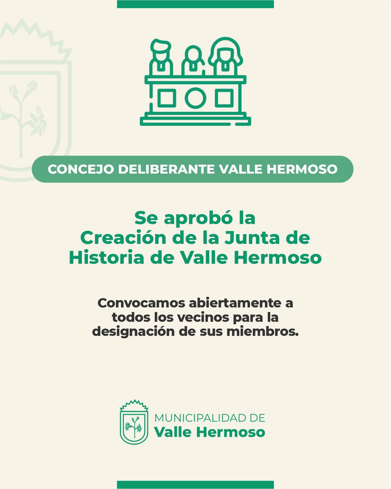 ¡Excelentes noticias para nuestra identidad local! Queremos contarles que el Concejo Deliberante aprobó por unanimidad la ordenanza para la creación de la Junta de Historia de Valle Hermoso.